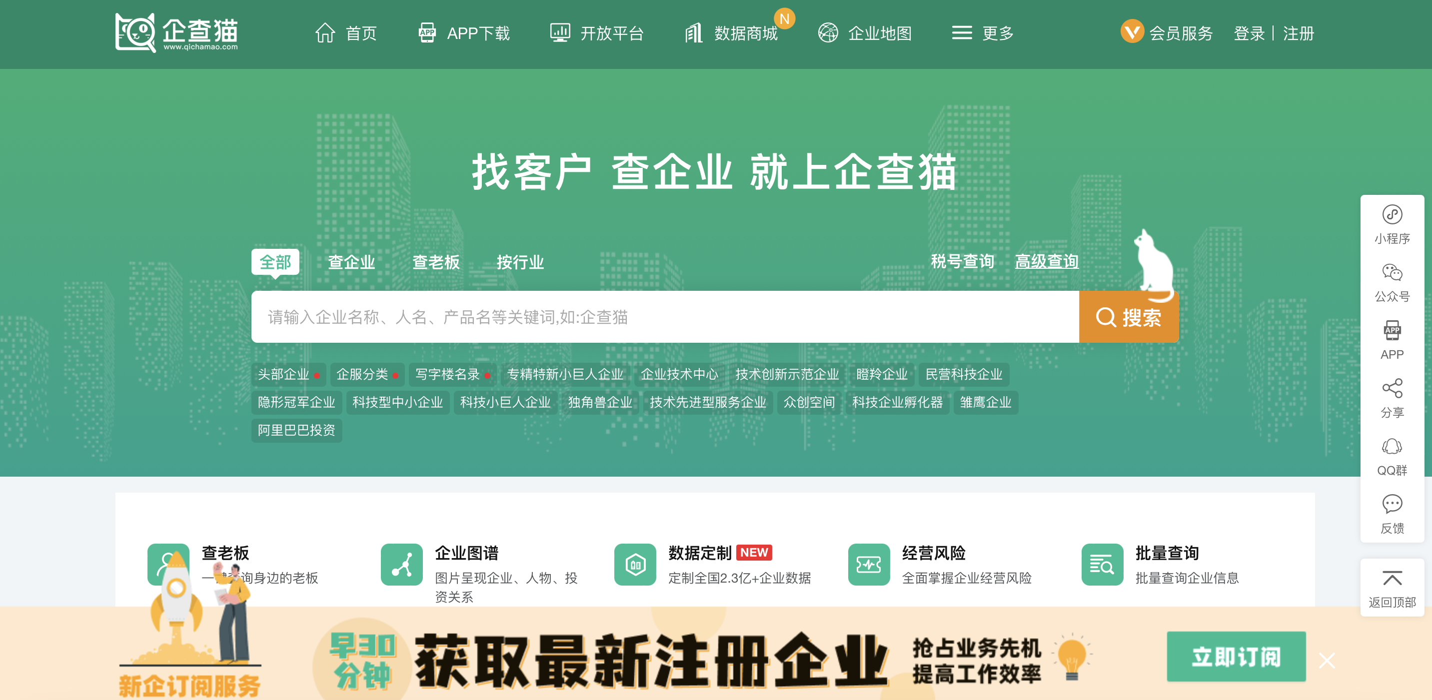 深圳の大手シンクタンク「前瞻産業研究院」の企業データベースサービス「企業大数据(企査猫)」。