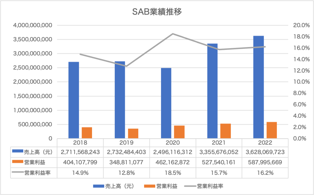 SAB社の場合、これだけの数字データが年度報告書に掲載されています。