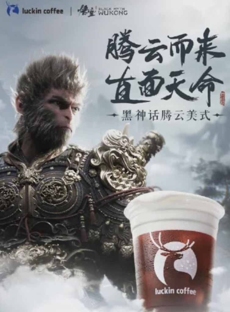 「黒神話 悟空」は空前の大ヒットゲームとなっており、9月5日時点で1700万ダウンロードに達し、経済的な波及効果はさまざまな業界に及んでいるそうです。luckin(コーヒー業界)以外にも、食品(稲村香)、家電(海信-ハイセンス)などとのコラボが話題となっています。