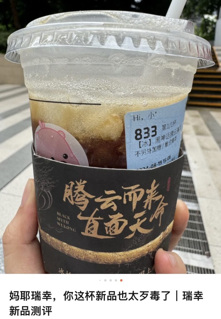 郭CEOは、プレゼンテーションの中で、若い消費者のニーズに対する洞察、イノベーションの重要性に触れ、8月に発売され人気が爆発中のゲーム「黒神話 悟空」とのコラボ商品「黒神話騰雲・美式(アメリカーノ)」の紹介も行いました。