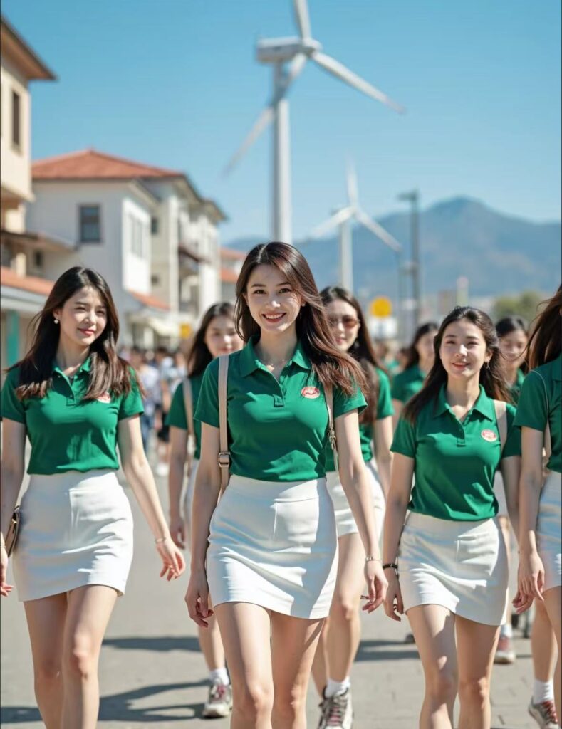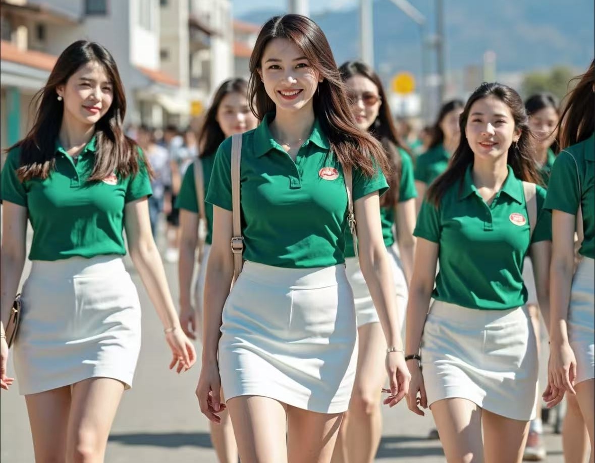 オフィスビルでは、カーディガンにショートテニススカート、ハイヒールを合わせたOLの姿が、カフェテラスでは、鮮やかなテニススカートとスニーカー姿の『辣妹(イケてる女子)』が日光浴を楽しんでいる。