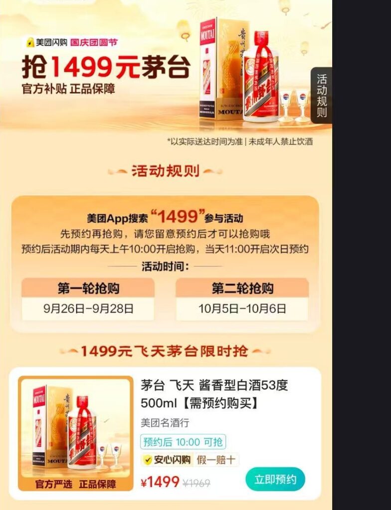 今年の「独身の日(11月11日)」セールでは、拼多多などのECプラットフォームで、「飛天茅台」の小売価格が1,499元を下回り、一部のライブ配信では1,399元、さらには1,299元という価格まで出現した。